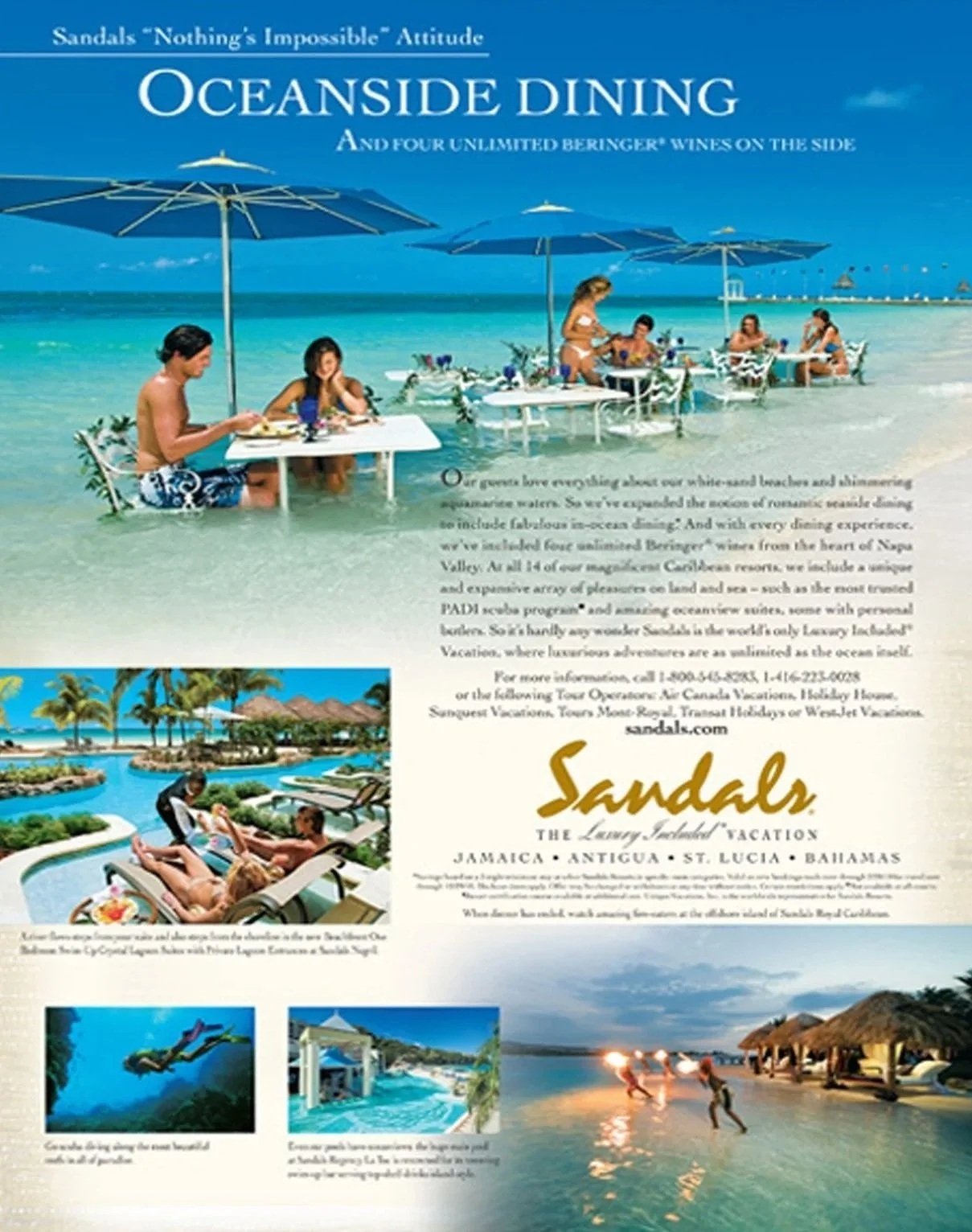 Sandals Resorts International is a chain of adults-only, all-inclusive luxury resorts in the Caribbean, famous for romantic, couples-focused getaways where a single price covers gourmet dining, premium drinks, land and water sports (including scuba diving), entertainment, tips, and airport transfers, offering a seamless, worry-free vacation experience.